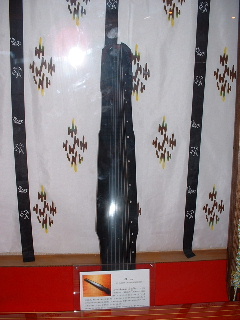 右は現在も演奏されている13弦の琴、手前は6弦の琴です。