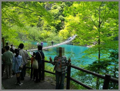 着きました〜「夢の吊橋」に。橋の入り口でちと渋滞・・・。
