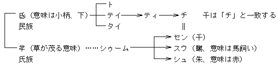 阿智王自身の姓は記されていませんが、阿智は阿千と同音です。楚人の後裔、タイ族は雲南ではセン、セム、サム、シェム、シャンなどと呼ばれており(「雲南」)、日本ではシャムとなります。見比べると、これが千の転訛であることは一目瞭然ですし、高句麗王も同一人物が朱蒙、鄒牟、衆解と表されていました。