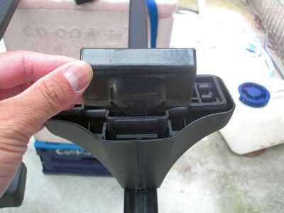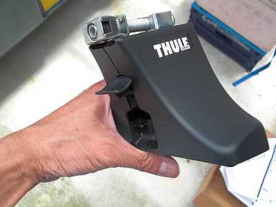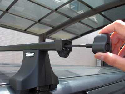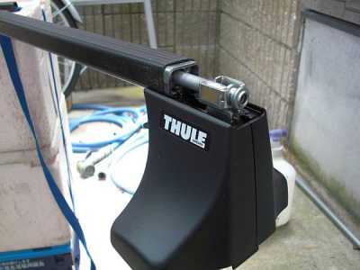 ![]() それではルーフキャリアの取り付け方の解説を始めましょう。 まず、取説にも書いてある通りフットをバーに固定します。フットの裏側にあるロックアームのレバーを上に上げ、ロックを解除します。 |