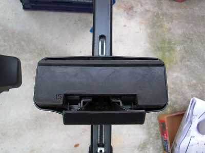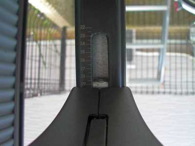 ![]() フットの位置決めはとても簡単でバーの裏に目盛りが印刷されていますので、指定の位置にフットを移動させてロックアームのレバーを下げロックします。 |