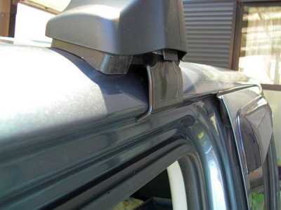 ![]() フロント側が取付け完了した写真です。くどいようですが左右のフットの位置がルーフの端から同じ位置にあるかどうかをよく確認してください。またバーやフットを手でゆすりながら動いたりせずにきっちり取付けできているか等も確認してください。 |