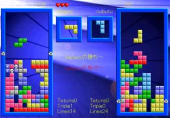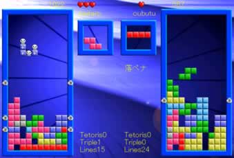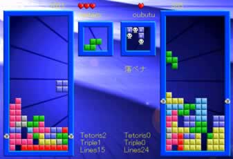 | Q:ちみが今、左画面のプレイヤーだチュウ。頑張ったのでテトリスが3つあるチュウ。相手の命は後一つ。さて、ちみは何をするかな?三択問題ではないチュウ。 |
