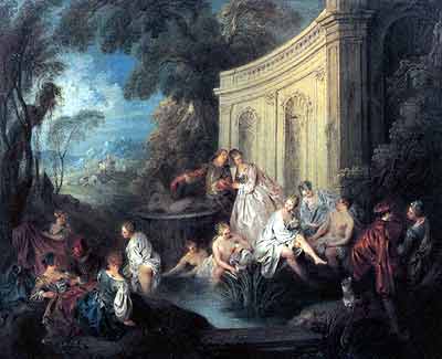 ーの弟子に当たるパテールという画家の「水浴する女性たち」です。 ワトーの一派には珍しく、屋外の女性の裸体をモチーフにしています。 ロココの時期の絵には、なまめましいヌードの絵が多くありますが、ワトーは死の間際に、自分が描いたこのような絵を処分するように、弟子に依頼したそうで、ほとんど残っていません。