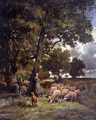 次はシャルル=エミール・ジャックという画家の「羊飼いの女と羊の群」(写真左)と言う作品です。 この人は羊の絵をたくさん描いて「羊のラファエロ」とまで呼ばれた画家で、この展覧会にも何点か出品されていました。 少しミレーに似た雰囲気があって、羊の表情が微笑ましい作品でした。