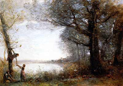印象に残ったのは、コローの「鳥の巣を捕る子供たち」(1872〜73年頃)。 静かな水面と明るい空を背景に、豊かで鬱蒼とした森に遊ぶ子供たちが描かれています。 亡くなる数年前の作品です。 この絵に大変よく似た構図の「モルトフォンテーヌの思い出」という絵がルーブル美術館にあって、代表作のひとつと言われていますが、それに劣らず落ち着いた情景的な名画だと思います。