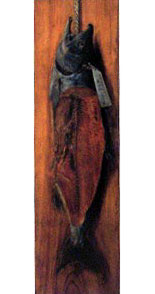 がいる風景を描いたものです。 少し暗いけれど、なかなかの出来映えで、慶喜が多才で知られているのもうなずける気がしました。 また、慶喜の絵の師匠でもあった高橋由一の「鮭図」もありました(左の写真)。 このテーマで高橋は複数の絵を描いています。 他にドガの踊り子の絵や、藤田嗣治の猫を描いた絵、リキテンシュタインの版画などが記憶に残っています。