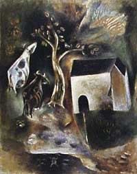 福王寺一彦 「月下洗菜」法林にはヒマラヤを描いた作品以外に、月が懸かっている夜景の絵がたくさんあります。 夜の絵って描きにくいだろうと思うのに、見事に独自の画風で描かれていて飽きません。 親子を比較すると、法林が写実的なのに対して、和彦は叙情的な感じの絵が多いように感じました。 それでも、一彦が満月の昇った夜空を背景にした絵を、何枚も描いているのは父親からの影響でしょうか。