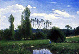 常設展で公開されている収蔵品はロダンの彫刻を始め、モネ(写真左)やルノワール、ドラクロワらの秀作があります。 写真をあげたのは、モネが17歳の時に描いた「ルエルの眺め」という作品。 まだ学生だった頃の絵ですが、すでにその才能は輝きだしていたようです。 右の写真は国吉康雄の「二頭の牛」という作品です。 1889年岡山生まれで、アメリカで活躍した画家です。 楽しい絵だと思って記憶に残りました。