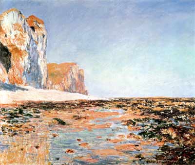 右の絵は、「プールビィルの断崖」(1882年)という作品。 青々とした空、海岸、切り立った断崖。 おそらく、まばゆいばかりの明るさに満ちた、光景だったのでしょう。 あふれる光の世界、モネらしい絵です。 1880年代前半に、モネは400点以上の風景画を描いていて、その3分の1以上がノルマンディー沿岸の絵だそうです。