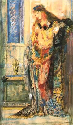 33cm×19cmという小品なのですが、それはそれは存在感のある、すばらしい作品で、展示室の中では群を抜いて輝いていたと思います。 モロー独特の妖艶な雰囲気、鮮やかな色使い。 しかし、派手すぎず落ち着きがあります。 緻密で、細部にいたるまで神経が行き届いた秀作です。 画家の技術の高さを、これ見よがしに見せつけているかの様な、本当に完成度の高い作品でした。