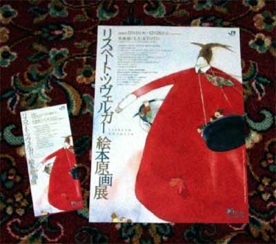 作品は、絵本の原画にふさわしく色彩鮮やかで、独特の空想の世界を描き出しています。 パンフレットの表紙(写真上)になっているのは、「Christian Morgenstern」という詩人にインスピレーションを得た作品の一点(偉大なラルース)で、小さな頭と大きくて真っ赤な体をしたうさぎ(?)の姿がユーモラスです。 作品全般に、洗練されて都会的なセンスが感じられます。