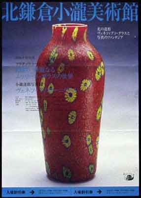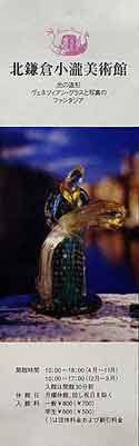 この美術館の収蔵品の特徴は、20世紀ヴェネツィアン・グラス、なかでも「ムッリーネ」という、パーツを使ったガラス細工の収集にあります。 ムッリーネと言うのは、色ガラスを束ねて棒状にし、それを薄くカットしたパーツのことです。 言い方を変えると、金太郎飴のような色ガラスの棒を作り、それをカットして組み合わせて作品を作りあげるのです。 上のパンフレットの写真で言えば、赤い花瓶の中にちりばめられている黄色い花模様が、一個一個のムッリーネなのです。 もともと同じような形をしているムッリーネでも、熱で変形させると、少しずつ違った形になり面白みが増しています。 美術館にはムッリーネ・ガラスのランプや、入場券にあるようなかわいい人形の造形もあって、楽しむことができます。 北鎌倉の雰囲気といい、美術館の佇まいといい、ガラス工芸品といい、どれをとっても楽しくて、ウッキーのお気に入りに追加したい美術館になりました。