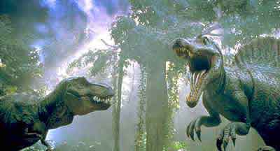 そして、まんまと強引に島へ着陸したまではよかったものの、そこで生き延びている凶暴で巨大な恐竜たちに追い回されることになります。 連れて行ったプロのハンターは、すぐ肉食恐竜の餌食になり、カービー夫妻やグラント博士達も脱出しようと試みますが離陸に失敗し、島をさまようはめになってしまいます。 捜索どころか自らが生きるか死ぬか。 なにしろ、ここはただの島ではありません。 前作までの舞台になったように、かつてインジェン社が秘密裏に恐竜を作り出していた場所で、今や国連の管理下に置かれている特別な島。 肉食恐竜のティラノサウルス(T−REX)やスピノサウルス、声で会話する知能をもったヴェロキラプトルがうようよ生息していて、空にはプテラノドンが飛んでいるという恐ろしい場所なのです。