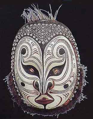 大阪にある国立民俗学博物館の収蔵品だそうで、200点以上の仮面が展示されていました。 民博へも行ったことがあるから、記憶は定かでは有りませんが、以前に見たことのある仮面もあったのかもしれません。右側の写真はパプアニューギニアの「祖先をあらわした仮面」で、まるで京劇のメイクの様にきれいです。