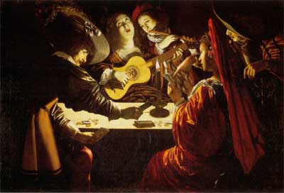 もう一つ写真を載せたのはルティリオ・マネッティという画家の「蝋燭の光に照らされて、カードと演奏をする人たち」と言う作品です。 つい先日カラヴァッジョを見に行きましたが、この絵の光の当て方を見て、カラヴァッジョの影響をうけた後継者の一人なんだろうなと思って印象に残ったものです。