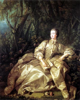 マダム・ポンパドールは、フランス王ルイ15世のおめかけさん。 平民出身で、貴族たちの反感をかったけれど、文芸を擁護し、その影響力は絶大だったそうです。 この人の肖像はブーシェ以外にもラ・トゥールが描いているし、ほとんど同じような構図の絵が、他にたくさんあります。