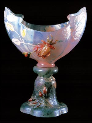 ガレの作品は、知名度もあるので、いろいろなところでお目にかかれますが、浜名湖畔に北澤美術館と言う、建物も収蔵品も立派な私設美術館があって、ここにたくさんのガレの作品が収集されています。 ここの「ひとよ茸ランプ」は絶品。 写真で見てもすごいんだらか本物の持ち味のすばらしさは言い表せません。 北澤美術館の収蔵品も今回の展覧会にたくさん出展されていました。 それから岐阜県にある飛騨高山美術館。 ここにもガレの作品や、ラリックの大きな噴水があって、数年前に見に行ったことがありました。