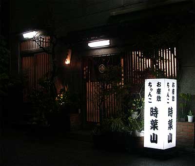 例年より1週間ほど早い東京の桜が散り始めた春の夜に、ウッキーはちゃんこ鍋を食べに行ってきました。 都営新宿線菊川駅から歩いて5分ほどのところにある「時葉山」。 知人のお父さんが贔屓にしておられるそうで、この日もあらかじめ座敷を取ってもらいました。 早速2階の座敷へ上がります。 急な階段を上がると、座敷席がいくつかあって、ウッキーらのあとには、隣の座敷に外人さんを交えた数人のお客さんがやってきました。 国際的だ。 時折英語が混じった賑やかな声が伝わってきます。
