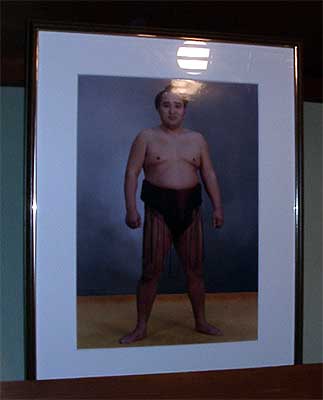 座敷では、元時葉山のまわし姿の写真や手形の額、番付表でこしらえた凧等が飾ってあって、本物のちゃんこ料理屋へ来た実感がします。