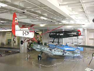 この博物館、4万6千uもの広大なフロアに50以上の展示場があります。 ゆっくり見て回ると5日もかかるとか。 しかし、本当に凄いのはその面積と規模ではなくて、展示品のほとんどが実物であること。 ドイツ人のこだわりを感じます。 今回どうしても見たかった展示品の一つが、あのライト兄弟が最初に空を飛んだ複葉機(写真左端)。 館内を歩き回ってやっと見つけましたが、とりたてて目立つでもなく、他の飛行機と同じように極めて自然にさりげなく展示してあります。 ここではこんな歴史的な収蔵品でも、展示品の一つにすぎません。 飛行機だけでも半端な数ではありません。 複葉機から名機メッサーシュミット、ドイツ空軍のジェット戦闘機、ジェットエンジンに至るまで全て実物。