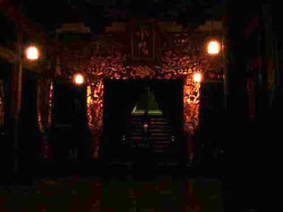 承陽殿(じょうようでん)といって、道元の遺骨が眠る場所です。 左が入り口の承陽門、、右が承陽殿の内部ですが、まだ日が登り切らない頃だったので、写真も暗くて見づらくなりました。