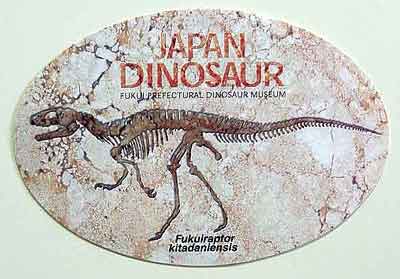 フクイラプトル・キタダニエンシスは北谷で発見され、日本で初めて全身骨格が復元された肉食恐竜で、体長約4.2m、後ろ脚に大きなカギつめが有るのが特徴だそうです。 下の写真は発物館で買ったキタダニエンシスをモチーフにしたシールですが、こんな格好で後ろ脚で2足歩行する恐竜だったみたい。 そういえば、映画のジュラシックパークでこんな恐竜が、たくさん登場しますよね。