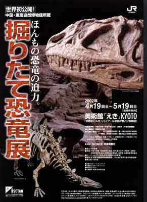 2002年ゴールデンウィーク。 京都で恐竜展が開催されていました。 中国の重慶自然博物館に所蔵されている本物の恐竜化石が、多数引っ越してきていたのです。 この「堀りたて恐竜展」と銘うった展覧会は、全国で巡回展示されていて、たまたまゴールデンウィーク中は京都で開催されていました。 若狭の自宅から、京都まで約一時間半かけて、JR京都伊勢丹の美術館「えき」を訪ねました。