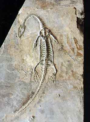 恐竜というと大きな生物と考えがちだけれど、上の左の写真は「シッタコサウルス」、右はケイチョウサウルスと言って、それぞれ体長が1m(左)、25cm(右)という小さな化石です。 いずれもまだ子供ですが、成長しても、それぞれ2mと30cmくらいの比較的小型の種類です。 シッタコサウルスの化石は、おなかに消化を助ける胃石が残っているという珍品でした。