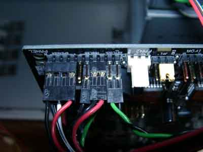 ケースはシンプルなデザインだけど、5インチベイ4つ、3.5インチベイが9つもある大容量タイプ。 マザーボードを収めて(中央)、フロントパネル用のコネクタを接続しました(右端)。 でもハードディスクのLEDコネクタを+−反対につないでしまい、後で直すはめに。 ドンマイ ドンマイ!