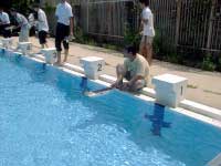 私が参加する25mプールを直線で走りスピードを競うクラスには、26艇がエントリーしていました。 しかし、会場のプールについた私の目に飛び込んできたのは疾走、いや、空を飛んでいるように見える一艇のボート。 その速さといったら並のものじゃない。 人が走るくらいの速さがあります。 絶句。 さらに追い打ちをかけるように、すさまじい速さで走るのはその1艇だけではなく、なんと5〜6艇もあるではありませんか。 それらの艇は抜きん出て早く、他の艇は足元にも及ばない感じです。