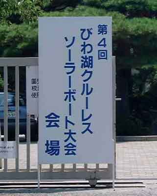 上の写真は制作初期の頃のスクリューの部分です。 翼のようなものは船体を水上に持ち上げるための水中翼なのですが、結局水中での抵抗が大きすぎて、最終的には全部やり直しになりました。 試運転は近くの川でします。 ある時、かじが利かなくなって、ボートが釣りをしている人たちの中へ入ってしまい、糸にからんで困りました。 それでも、どうにか大会の10日くらい前までには完成までこぎ着けました。 初めて水に浮かべたのが大会前日だった昨年と比べて、余裕の工程です。 この段階で、今年のボートは去年に比べて3倍とまでは行かないかもしれないけれど、確実に倍以上のスピードに仕上がっています。名前は「Wukky2」です。 さて、初めて参加した昨年は準決勝敗退に終わり、「今年こそ決勝戦に残るんだ」と心に堅くリベンジを誓って臨んだ2年目の大会当日は去年と同じような快晴でした。