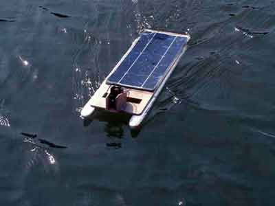 それでも、どうにかゴールデンウィーク中に、浮かべて走らせるところまでこぎ着けました。 ところが、フロートの大きさを重量をささえるぎりぎりに押さえたので、ちょっと波があると水をかぶります。 このままでは、モーターが濡れてダメになってしまう〜。
