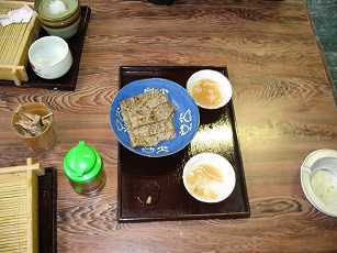 しばらく待つとソバを伸ばし、焼いて短冊に切ったものが出てきた。