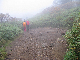 | 9月16日(曇り小雨&霧) 5:00十六の沢登山口−7:20天狗のコル−9:30頂上まで約1時間(引き返し点)−10:30天狗平(早い昼食)−14:00登山口 | |||