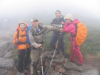 Sさんの提案で、久しぶりの北海道の登山となった。 KSさんに飛行機の手配を頼み、千歳からレンタカー、泊まりはぬかびらユースホステル(温泉付き)の楽々プランだった。 しかし、天気予報は降雨確率50%、次の日も変わらず、ん〜・・行くか・・ まだ薄暗い道を登り始める。 ガスで景色も見えず、淡々と登り続ける。 天狗のコルを過ぎ、黙々と下を向いて歩いていると、登山靴のゴム底を見つけた。 靴底の落とし主は、どうしたんだろうねと笑う。 天狗平は強風が吹き、このまま行くかどうか迷う。 ここの岩陰にナキウサギを発見。 鳴き声はずっと聞こえていたし、霧にナキウサギの影は見ていたが、ここではっきりと確認出来た。 もう少し、先に行って見ようと歩き出すと、風も収まり、この分なら頂上も行ける!と、ニペソツ頂上が射程距離に入った時、一人が突然、靴の底がない!とのたまう? ん?するとあの落ちていた靴底は! ゴムなしの底では、滑って危ないので潔く退却。 早い目の昼食を、風のない場所でゆっくりと摂って、下山する。 なぜか、下るほど天気は良くなり、展望も良くなってくる。 下山して、一度宿に戻り、幌加温泉の割引券をもらい混浴温泉に入る。 当方の女性メンバーは、タオルを巻いて湯に入るというマナー違反に比べ、地元の女性は慣れたものであった。 今回も山以外に盛りだくさんで、熱気球、旭山動物園、旭川のラーメン村、鄙びた温泉、サッポロビール園、周辺にエゾリスを見かける居心地のいいユースホステル、北海道ならではの景色・・ ニペソツに再挑戦するかは微妙だが、北海道にはまた行きたいと思う。 |