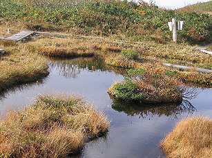 日曜の夜京都を発ち、林道奥の登山口の駐車場に着いたのが0時半。 軽くビールを飲んで、車中泊。 外気は5度、見上げれば秋の星座図をそのまま貼り付けたような星空が広がっている。 翌朝、尾根に付けられた急斜面の登山道を登る。 キツクても、せいぜい40分で白木峰に立てるから、林道を遠回りするよりも早い。 山頂は360度の見晴らしで、方位盤に描かれた山と展望の山を見比べる。 既に白く雪化粧中の白山の左に、御岳、乗鞍と続く。 方位盤には、乗鞍の右肩に小さく富士山が描かれているが、霞んで確認できない。 乗鞍の左に、穂高、槍、薬師、立山、剱と続き、白馬、朝日まで見える。 こんなに簡単に登れて、展望のよい山はそうはないだろう。 しばし展望を楽しんでから、池塘群を見に行く。 一の池、二の池、三段池、浮島の池と、草原の中に池塘が点在する高層湿原の中の木道を歩く。 秋色の草原と秋晴れの空、遠くの名峰、気持ちの良い時間だ。 景色を堪能した後は、白木峰まで戻り、小白木峰まで行く。 小白木峰への道は、尾根を辿る登山道だ。 白木峰の由来のブナ(しろき)が、尾根沿いに多く存在している。 ブナの黄葉が見られるかと期待していたが、緑色を残し葉端を内側に丸めた枯れ葉色で、大いにガッカリだった。 小さなアップダウンを繰り返し、やっと着いた小白木峰は、三角点があるだけで、山名板もなく、三角点がなければ通り過ぎてしまいそうだ。 人も通らないだろうと、登山道でお湯を沸かし、ビールを飲み、早い昼食をゆっくりと取る。 ここからの展望はあまり良くなく、やはり白木峰からの展望が素晴らしい。 小白木峰からの戻り道で会ったのは2人だけだったが、白木峰に戻ると、多くの人が池塘の中を散策していた。 白木峰から下って、白木峰山荘でコーヒータイムとする。 小屋の真ん中に囲炉裏があり、広々としており、天気が悪い時などはいい休憩場所になりそうだ。 コーヒーを飲みながら、ガイド本のコピーをじっくり見ると、小白木峰の少し先に大きな池塘が有り、金剛堂山の姿を池に写すと写真入りで載っている! もう少し先まで足を延ばしていたら、もっとよくガイド本を読んでいたら、素晴らしい池塘が見られたのにと、残念がっても後の祭りだ。 小屋から林道に降り、少し戻って尾根の登山道を急下降する。 上りもキツイが下りもキツイ、林道の法面の上などは、けっこうビビる。 駐車場に戻ると、数台の車が平日にもかかわらず並んでいた。 (山) |
