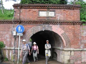 一人が寝過ごし(だーれだ?)たので、8人でウェスティン都ホテル前を出発。 インクラインから日向神社の前を通り、高度を上げていくと山科の町が一望できる。 山科団地の南を、新幹線が鉄道模型のように京都方面に走り去る。 北に向かって登山道が尾根より少し東なので、京都の町並みは林の向こうで見えない。 右は林が遠く広がり、市内のすぐ縁を歩いているとは思えない。 あの声はホトトギス、ウグイスが上手に鳴いている、あの鳥はたぶん・・、とOさんが(たぶん付きで)詳しい。 大文字山三角点はコースに入っていないが、せっかくだからと寄ってみる。 以前に来た時より眼前の樹が払われ、山科の一部と京都市内が見渡せる。 本来はコースに戻り、西に谷を下り市内に出て、哲学の道を歩いて銀閣寺に至るのだが、相談の結果そのまま大文字火床に向かう事にする。 火床から京都をしばらく眺め、銀閣寺へと下る。 観光客の群れの中にザックを背負った我々は少々場違いだ。 バブテスト病院の南から谷筋に入り、すぐの小さな神社で昼食とする。 既にお昼を回っていたので、待ちかねてのビールを開け、境内でワイワイと楽しくランチタイムを過ごす。 瓜生山を巻いて比叡山をフウフウ登ると、アルコールも汗とともに抜ける。 石の鳥居から左に一旦下り、流れを3つ越えて登り返すと、きらら坂の水飲み対陣跡に出る。 実は、ここから山頂駅までが今回のコースで一番キツイ登りになるが、自信がないと言っていた人も元気に登っている。 標識番号をあと幾つと数えながら進むと、突然電車が目の前に現れる。 やっと今回のゴールの山頂駅に着き、ロープウェイで八瀬駅に下り、叡電に乗って出町柳へ。 今回は距離も長く、最後が比叡山への登りだったので、京都一週トレールで一番きつかったかも。 そして、三条から八瀬まで市内を歩けと言われても絶対歩けないのに、山の中なら歩き通せるのが不思議だった。 (山) |