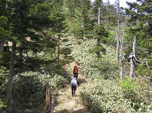笹原とシラビソの登山路 |