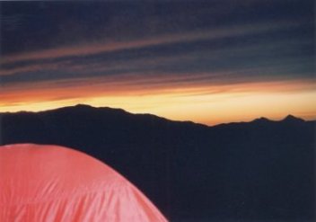何とか夕食を済ませ、ずり落ちるのを足で止めながら寝るのも慣れたが、勾配は一方向だけでなく、朝になれば他の2人にテントの端に押し付けられていた。