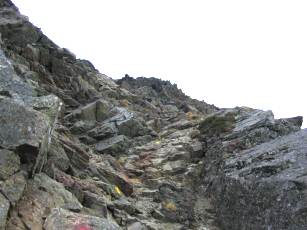 塩見岳上部の岩のルート |