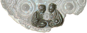 三角縁神獣鏡には、製作技術自体が未熟だと判断される鏡群が多く含まれ、国産の「仿製鏡」と考えられています。これらの「仿製鏡」を除外したなかで、「同向式」の形式のものや、年号をもつものが、古く、技術的に高度だと考えられているようです。しかし、これらのなかにも「完成度の高い図像」を持つ鏡はそう多くはないように思います。「同向式」の形式のものには、ひとまわり小さな画文帯神獣鏡に同様の図像のものがあり、それらの図像は、もともと画文帯神獣鏡のサイズにあわせて作られたように思われるアンバランスささえ感じます。それ以外のものにも、モデルが存在しそれを模倣しているような、拙さを感じます。しかし、この鏡にはそういう印象はうすく、内区だけしか残されていないにもかかわらず、この図像自体で完結している、はっきり意図されて作られたような完成度の高さを感じるのです。