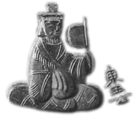 梅原末治氏の『紹興古鏡聚英』の図版62にこの主神と同じようなデザインの神像の鏡が収録されています。(*1)