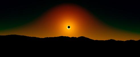 上の画像は、卑弥呼没年に近い日蝕として注目されている、西暦248年9月5日朝の日蝕の映像を再現してみたものです。奈良県田原本町にある多神社からの視点を想定しています。大和平野中央部から見る、6時6分の最大食のイメージはこのようなものだったでしょうか。(*1)