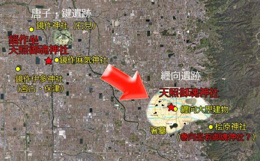 唐子・鍵遺跡から纒向遺跡への移動と二つの天照御魂神社