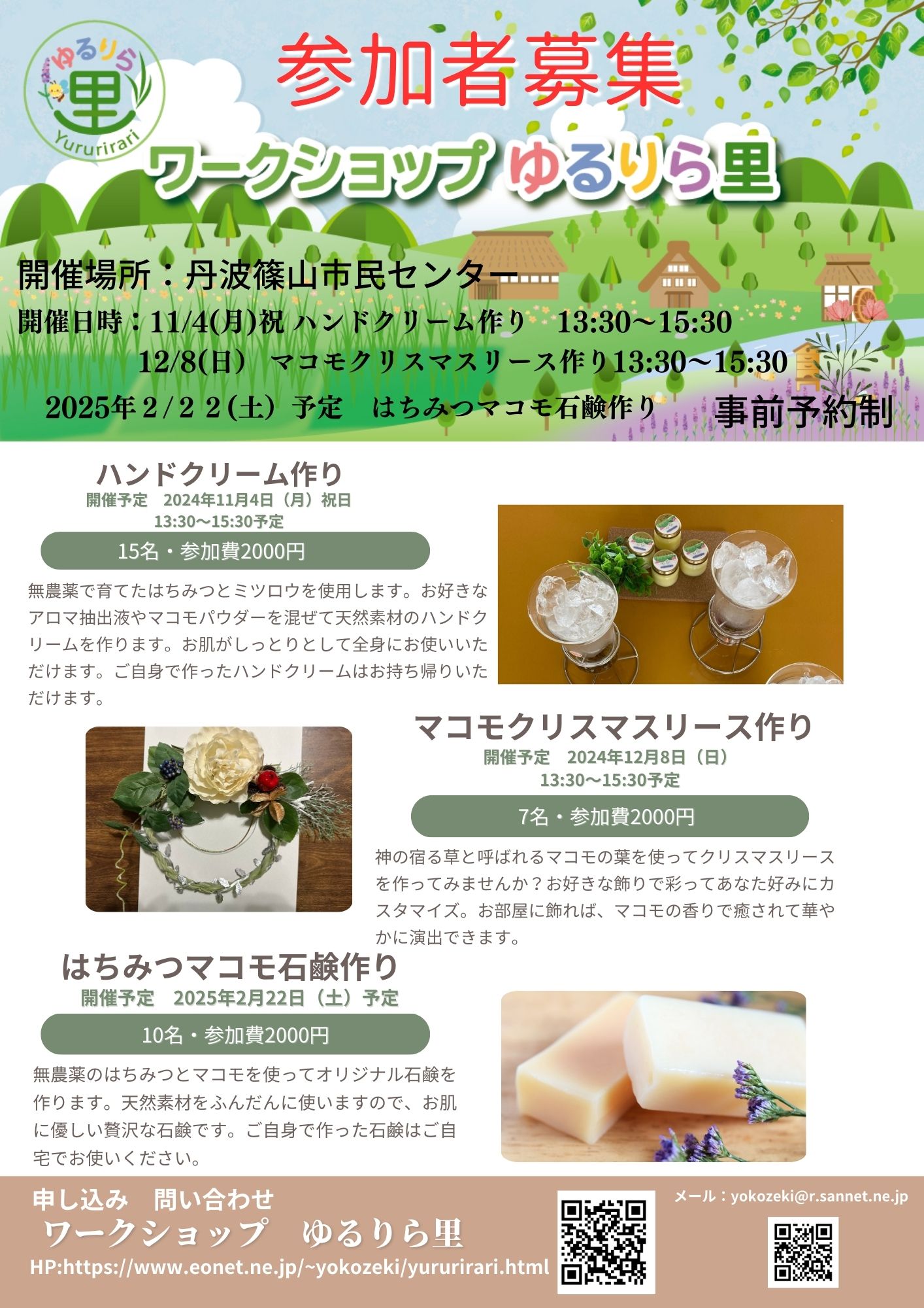教室の申込はメールで ゆるりら里 横関まで