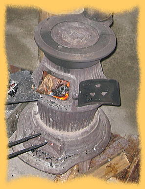 農家民宿善の土間には懐かしい薪ストーブがあります。