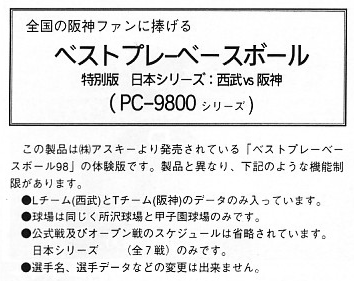 「PC-98用の体験版についてですが、阪神西武の日本シリーズ戦ができるのではないでしょうか?」