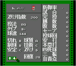 たとえ制球が良くても、球に力がなければ打たれてしまいます。また、制球の悪い投手は荒れ球が良い方向に作用することもあります。特に選球眼が悪い打者を相手にした場合、荒れ球が生きるようです。なお、制球もスタミナ指数に応じて悪化します。