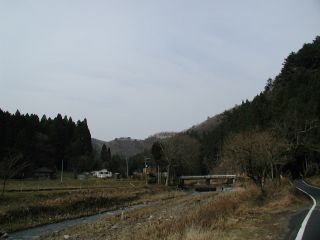 | おにゅう峠へ続く県道はこんな感じ あの山を越える! |